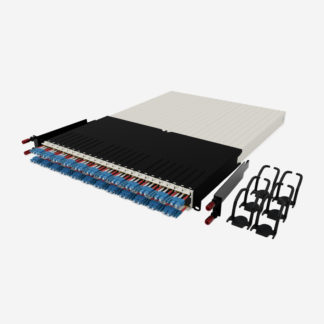 Leerrahmen inkl. 24 Kassetten FO OM4, 6 Patchcatch u. 2 Montageschienen samt Befestigungsmuttern -