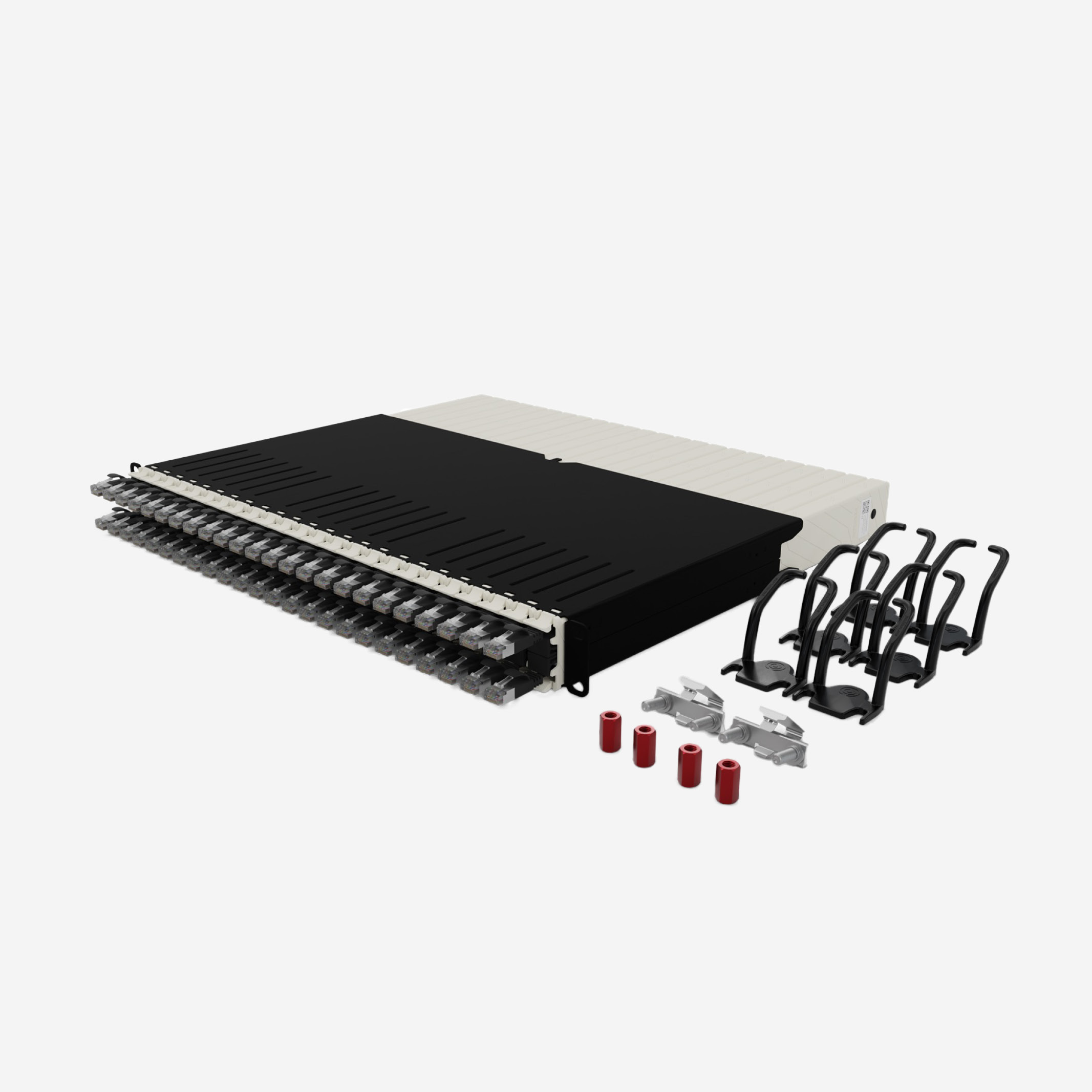 Leerrahmen inkl. 24 Kassetten UTP Kat 6A, 6 Patchcatch u. 2 dev/mount