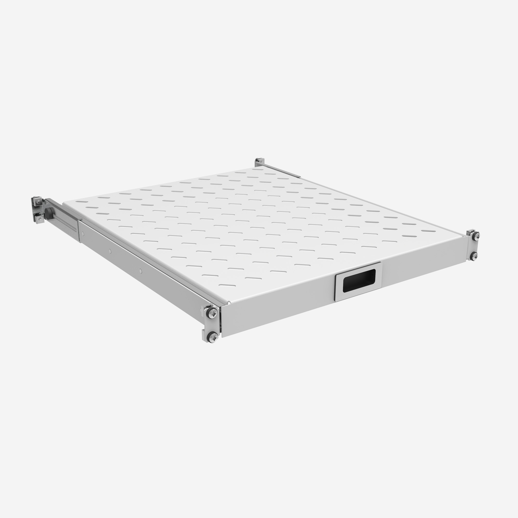 Schrankzubehör 19 Zoll Fachboden, 4 Punkt Befestigung, 1HE, ausziehbar 605mm, Schienenabstand 650-750mm