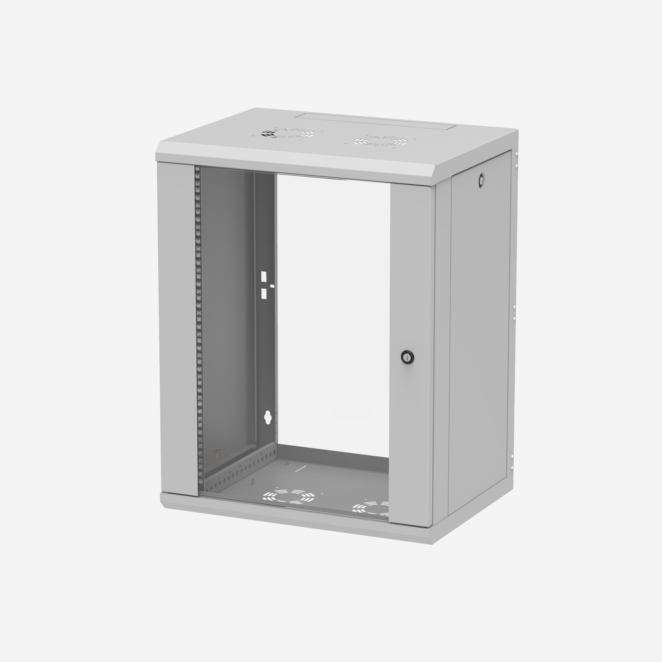 Z-Cube Wandschrank 19 Zoll 15HE 600×450 Vollglastüre, Seitenwände abnehmbar, 19 Zoll vorne tiefenverstellbar