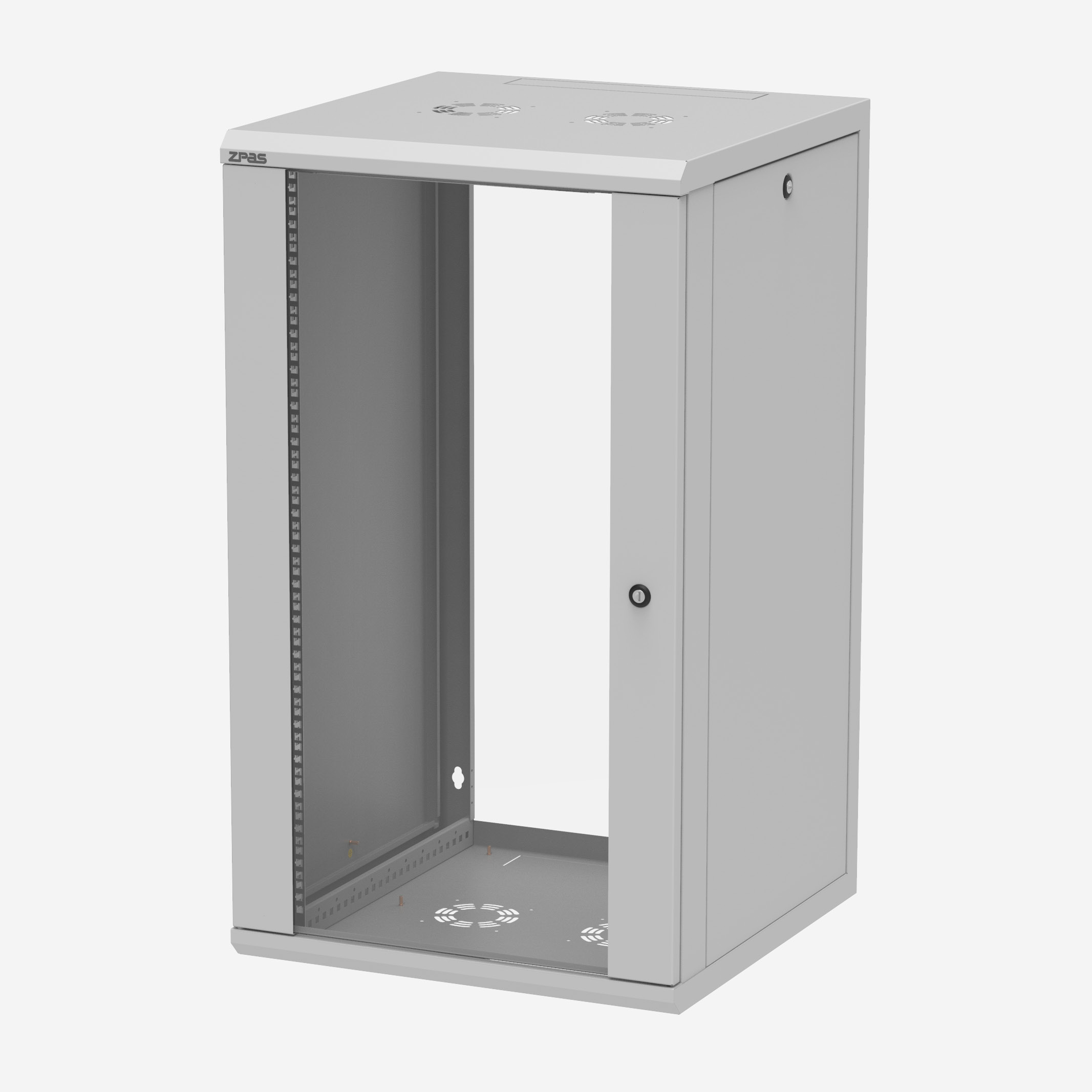 Z-Cube Wandschrank 19 Zoll 21HE 600×600 Vollglastüre, Seitenwände abnehmbar, 19 Zoll vorne tiefenverstellbar