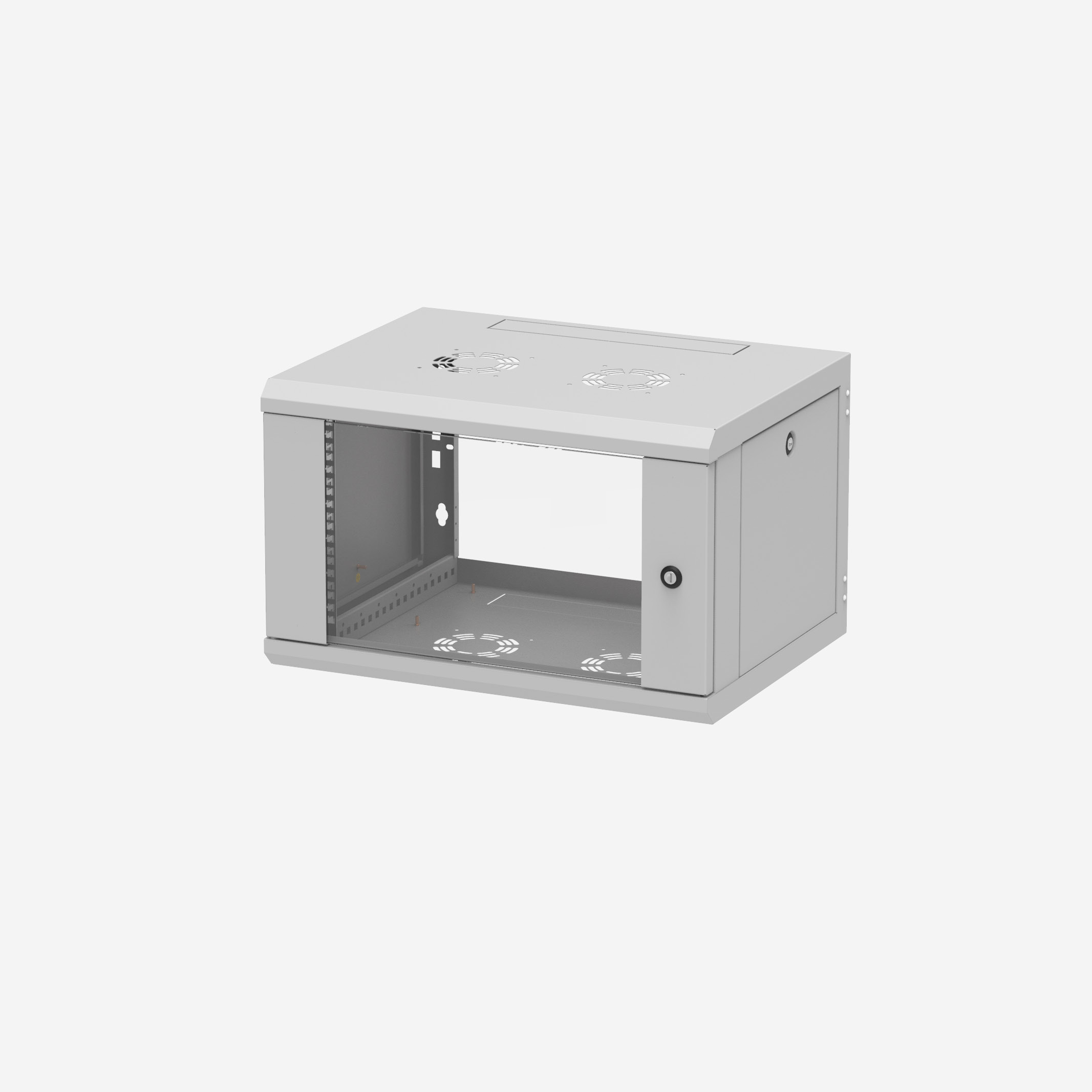 Z-Cube Wandschrank 19 Zoll 6HE 600×450 Vollglastüre, Seitenwände abnehmbar, 19 Zoll vorne tiefenverstellbar